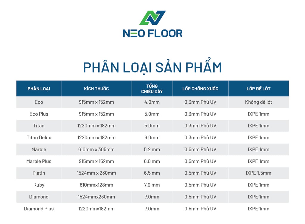 Sàn đá công nghệ SPC (Stone Plastics Composite) là dòng vật liệu lát sàn thế hệ mới dẫn đầu xu hướng tiêu dùng tại Mỹ, châu Âu, Hàn Quốc, Nhật Bản… Với cấu tạo 05 lớp thông minh, trong đó lớp lõi kết trọn tinh hoa của bột đá vôi trắng CaCO3 và nhựa nguyên sinh PVC, giúp Sàn đá công nghệ SPC Neo Floor sở hữu những tính năng vượt trội, “hiếm có khó tìm” ở các sản phẩm sàn truyền thống. Cùng vân sắc gỗ, đá tự nhiên tinh tế, Neo Floor sẽ là người bạn đồng hành mang đến những tiện nghi cho nhịp sống hiện đại, nâng tầm chuẩn mực sống mới và đánh thức những giá trị sống đích thực.
